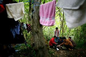 Les migrants affluent quotidiennement dans le bois de Angres, attenant l’autoroute A26.